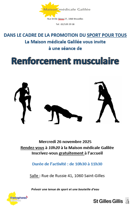 La prochaine activité sportives de la maison médicale: le 15 octobre zumba.